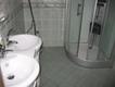 V kúpeľni sa nachádza samostatný sprchovací kút s vodovodnou batériou nerezovou pákovou so sprchou, 2x keramické umývadlo s vodovodnou batériou nerezovou pákovou . Keramický obklad je vyhotovený dookola celej kúpeľne aj okolo sprchového kúta.
